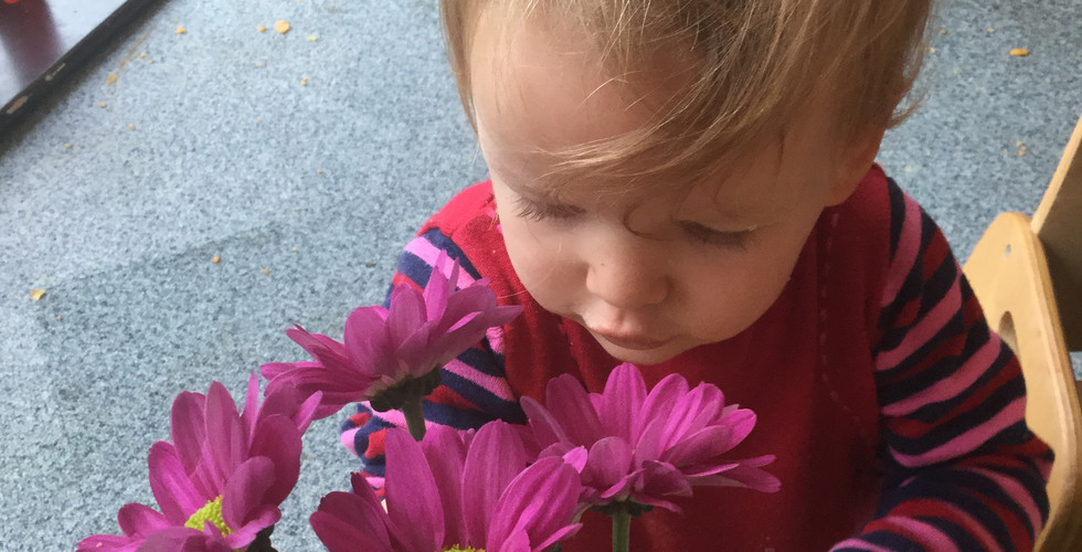 All the children enjoy the flowers, even our youngest children enjoy the flowers placed on the table at snack and meal times.